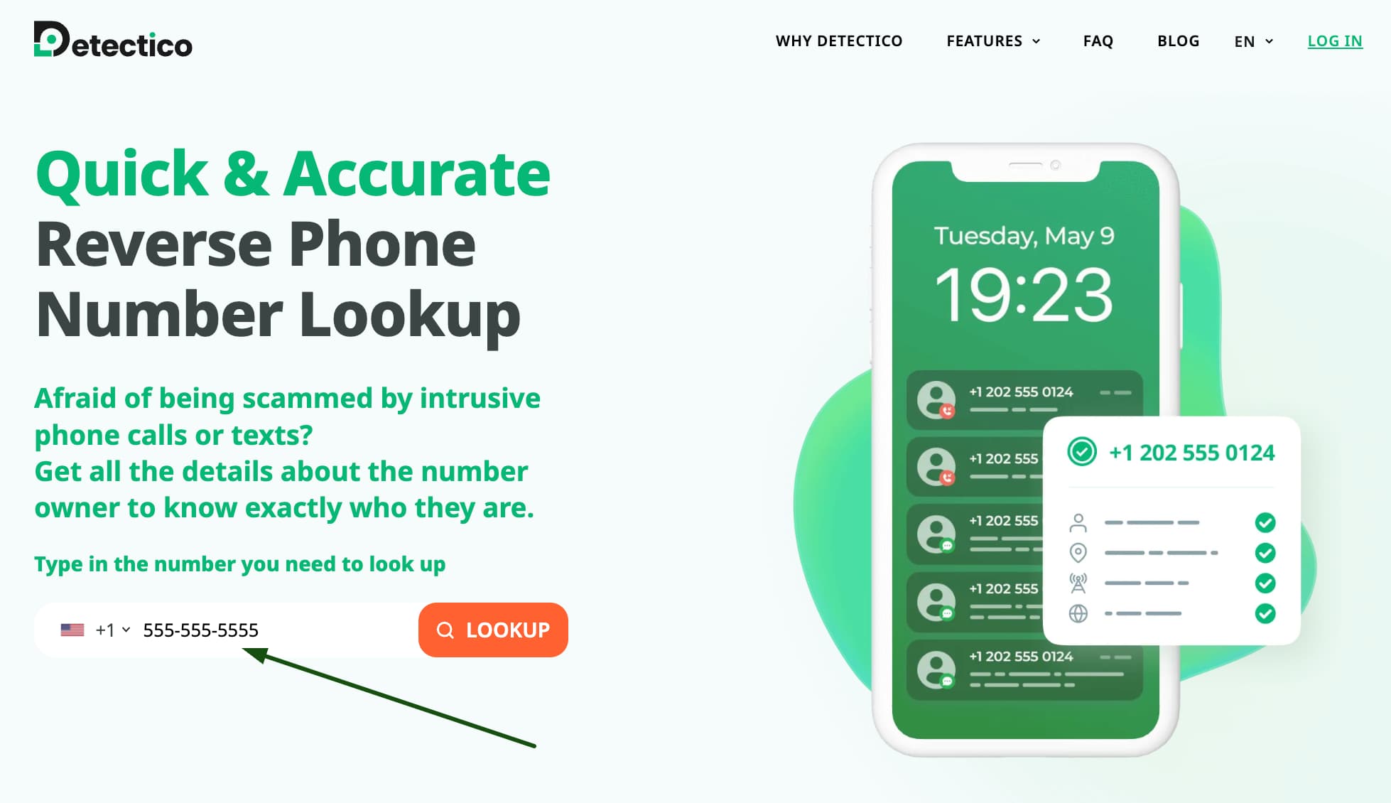 Το Detectico προσφέρει ένα φιλικό προς το χρήστη, ιδιωτικό και αποτελεσματικό εργαλείο αντίστροφης αναζήτησης τηλεφώνου για να τραβήξει την κουρτίνα αυτών των μυστηριωδών κλήσεων. Μετατρέπει μια στιγμή αβεβαιότητας σε μια στιγμή διαύγειας.